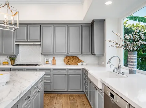 Enhance your kitchen or bathroom with our premium custom cabinets and countertops. Discover endless options in granite, quartz, and more for a sophisticated finish.
